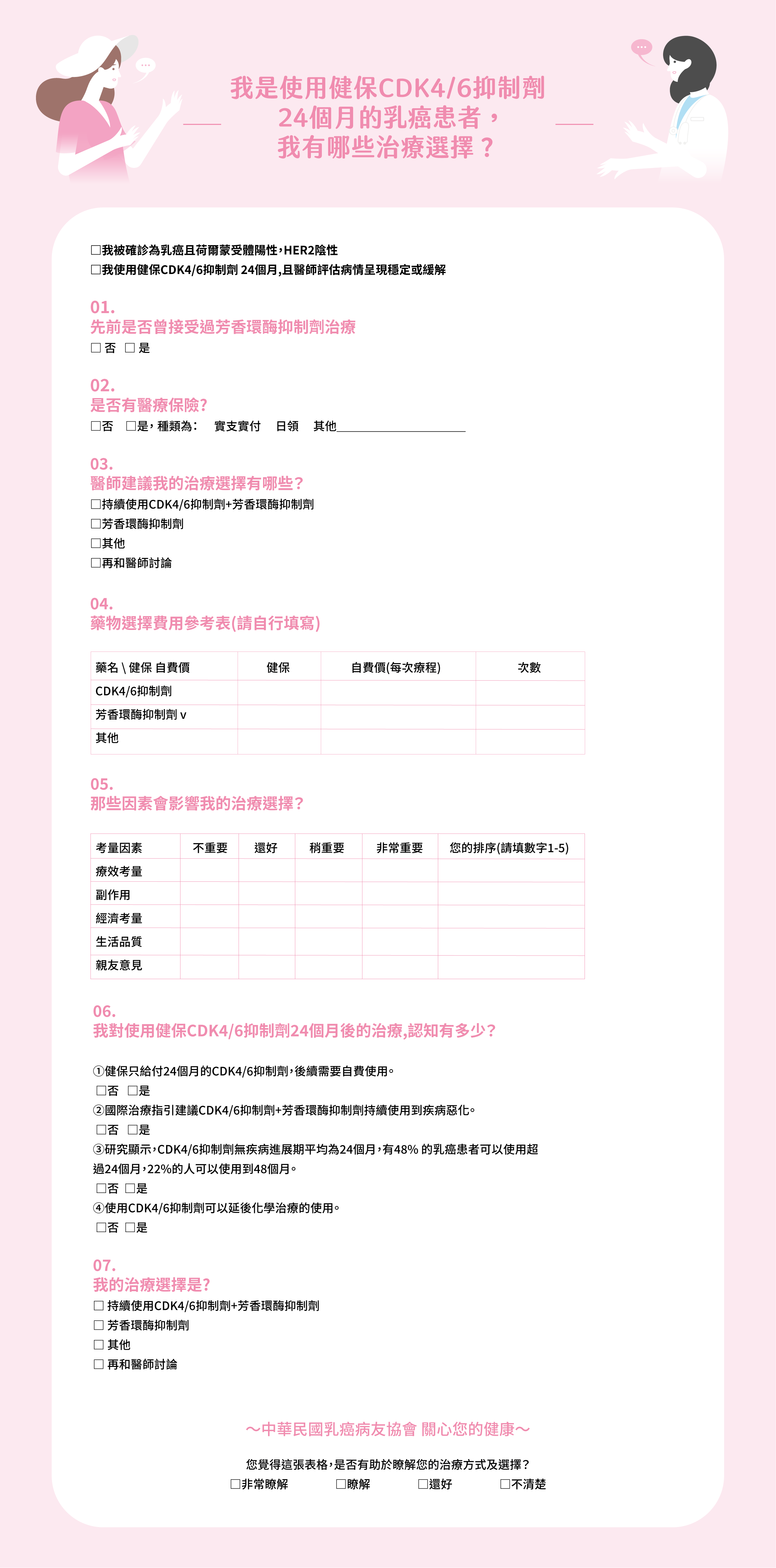 踏上乳癌復發轉移的旅程後,最重要的是告訴醫生在治療過程中,什麼對您而言最重要!